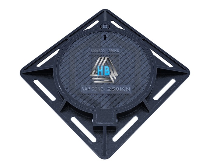 Nắp Hố Ga Gang 800 ×800 Tải 12,5 tấn Khung Âm