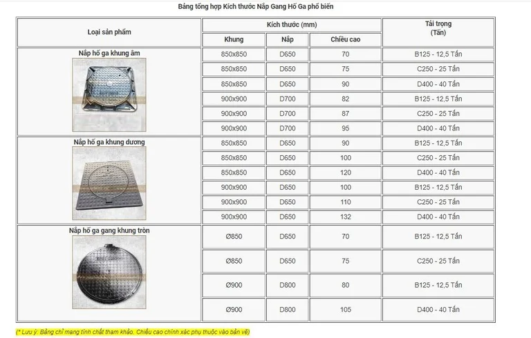Các Thông Số Kỹ Thuật Của Nắp Hố Ga