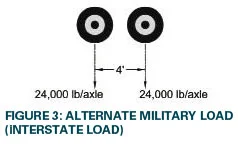 Khi Hệ thống Đường cao tốc Liên bang phát triển vào những năm 1950, một trong những mục tiêu của nó là vận chuyển các phương tiện quân sự. Các loại tải trọng quân sự thay thế (còn được gọi là Tải trọng liên tiểu bang) được tạo ra để trang trải tải trọng trục từ các thiết bị quân sự hạng nặng. Tải trọng mới này, được hiển thị trong Hình 3, bao gồm hai trục cách nhau 4 feet với mỗi trục mang tải trọng 24.000 pounds.